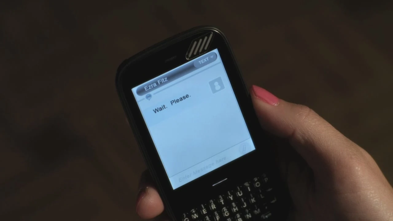 While not in this episode, Aria sends Ezra a text message telling him not to rush back from New York and that Lieutenant Tanner had a lot of questions about him and Shana.